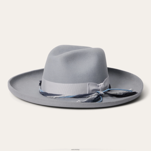 A stetson seeker kollekciónk része, az oceanus fedora 4″-es fodros, nyers szélű karimával, 4 1/4″-es középső csipetnyi elülső koronával és merev, 100%-os gyapjú filc szerkezettel rendelkezik. a világosszürke testet egy többrétegű kalappánt egészíti ki, amely széles grosgrain szalagot és dupla, kézzel festett selyemzsinórt tartalmaz. további részletek egy kivehető tollrészlet, csillag alakú fém kalaptű. műbőr izzadságszíj, teljes szatén bélés és stetson kalapdoboz. büszkén készült az USA-ban.