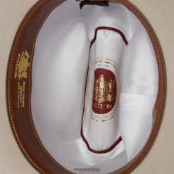 Az open road royal deluxe roan bőr ruhát tartalmaz.tband és egy 4 1/4″-es korona grosgrain kalappánttal és márkajelzéssel ellátott vas kalaptűvel, amelyen a “jbs” kezdőbetűk láthatók, biccentés alapítónknak, John b. stetson, akinek úttörő öröksége minden általunk eladott kalapban él.