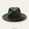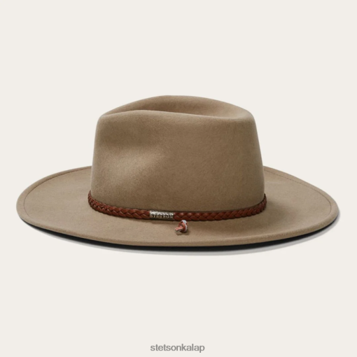 a sagebrush kültéri kalap összenyomható gyapjúfilcből készült, csipetnyi elülső koronával, fonott bőr kalappánttal és állítható bőr állszíjjal.