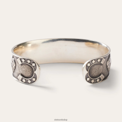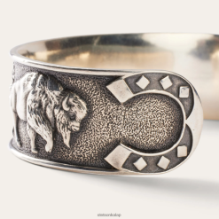 klasszikus americana motívumok díszítik ezt a délnyugati ihletésű mandzsettát. a hosszúszarv koponyája a mandzsetta elülső részén és közepén helyezkedik el, csomózott kötelek, bivalyok és patkók szegélyezve. valóban díszes, ez a mandzsetta megragadja a masszív délnyugati szellem összes ikonikus elemét. hordja ezt magában, vagy rétegezze más darabokkal a klasszikus megjelenés érdekében.