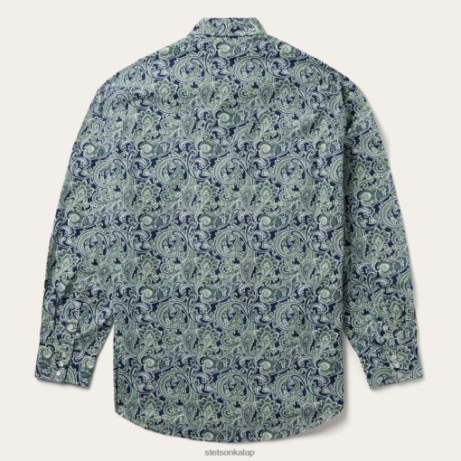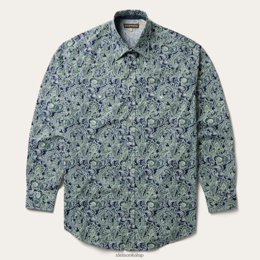 ez a nyugati ing könnyű pamut poplinból készült, zöld tavaszi paisley mintával. egy pontra ívelt hátsó járom, logós gyöngypattintható elülső rész és három pattintható mandzsetta található. a bal elülső zsebet a stetson ”s” logó díszíti, a jobb ujjú zárat pedig a ‘stetson’ felirattal. többszínű belső kárpittal rendelkezik, és 100% pamutból készült a minőség és a légáteresztés érdekében. ennek az ingnek a tapintása csak javulni fog az életkorral.