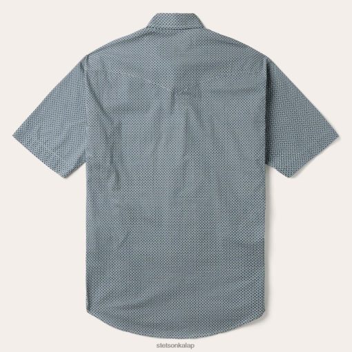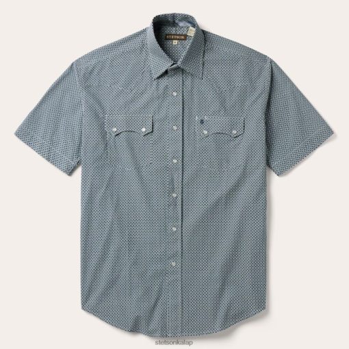 ez a rövid ujjú nyugati ing könnyű pamut poplinból készült, körbefutó gyémánt nyomattal. egy pontra ívelt hátsó pánttal, klasszikus pattintható előlappal rendelkezik, logós gyöngypattintással. a bal elülső zsebet a stetson ”s” logó díszíti, és belső díszítése kontrasztos. 100% pamutból készült a minőség, a légáteresztés és az életkor előrehaladtával egyre jobb tapintás érdekében.