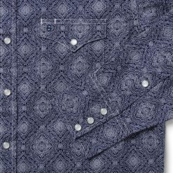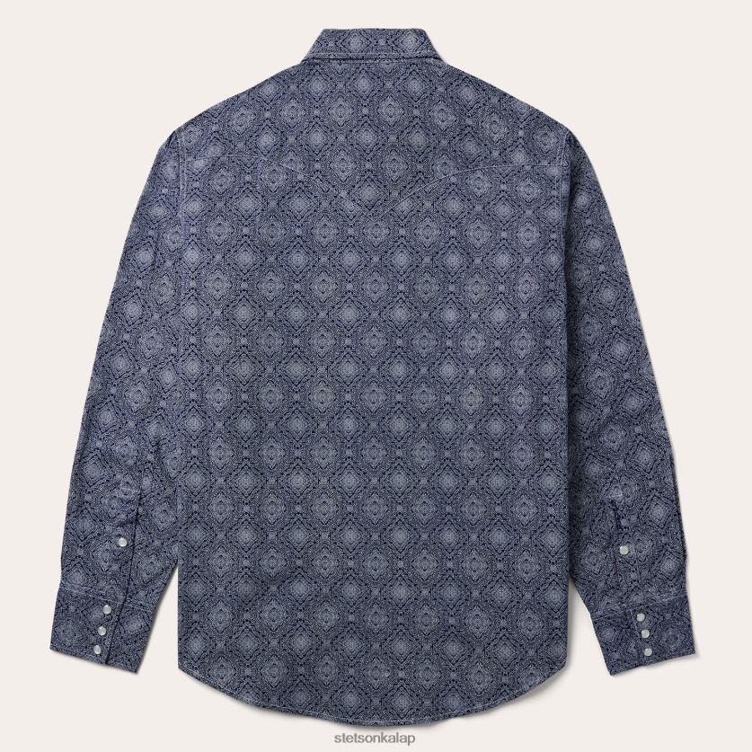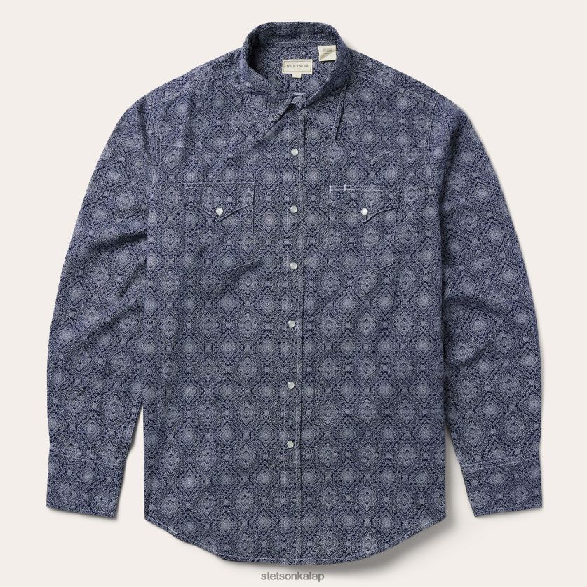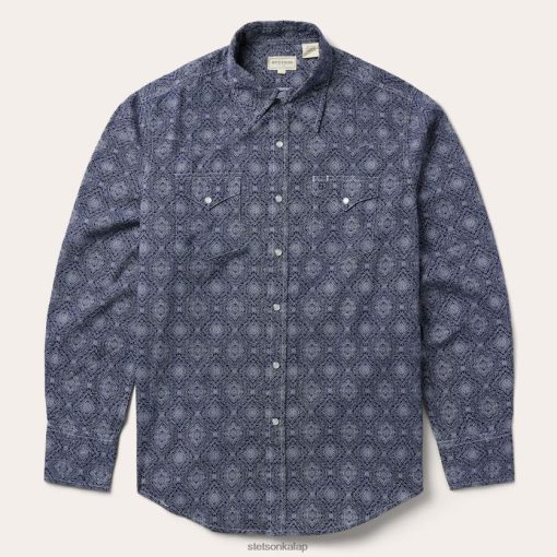 Ez a klasszikus western ing vintage ihletésű allover medálmintával készült, és ropogós pamut poplinból készült, amelyet kimostak, hogy puha tapintású legyen, ami az életkorral csak jobb lesz. egy ponton ívelt hátsó járom, logós gyöngypattintható elől és három pattintható mandzsettával rendelkezik. a stetson ”s” logó a bal mellkasi zsebben, a ‘stetson’ pedig a jobb ujjú éknél található. vágott díszítőelem, a modern illeszkedés érdekében a stílus és a kényelem tökéletes keveréke.