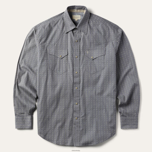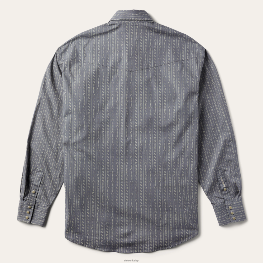 Ez a szürke elöl patkós ing exkluzív patkócsíkos motívummal és további autentikus nyugati részletekkel rendelkezik, mint például egypontos elülső és hátsó járom, egypontos mellzsebek és három patkós mandzsetta. finoman domborított stetson logók a mellzseben és az ujjakon, valamint a feltűnő belső paisley kontrasztos díszítés további stílust kölcsönöz. ropogós pamutpoplinból készült, és a klasszikus, eredeti szabásunkkal szabott, megvan a stílus, a kényelem és a tartósság, amely ruházatunk ismérve… és talán még egy kis plusz szerencse is.
