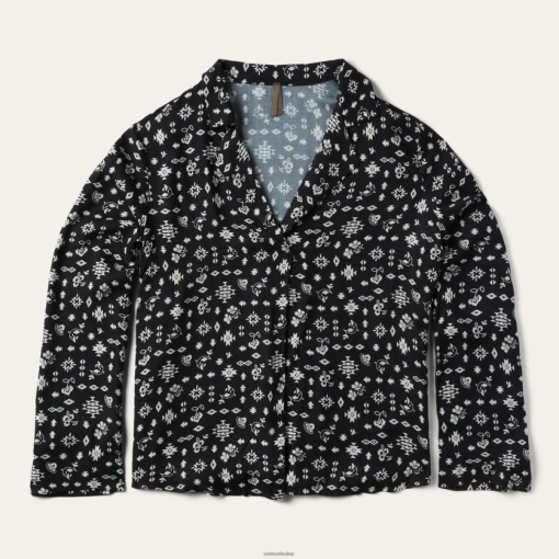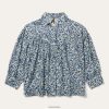 ez a pulóver blúz 100% műselyem twillből készült, és mindenütt délnyugati ditzy mintával rendelkezik. Nyitott bevágásos gallérja V-nyakkal, hosszú ujja enyhe csengővel és nagy redő a középső elején.