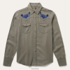 ez a fejforgató hímzett ingruha 100% pamut farmerből készült, amely a ruhadarabok mosása az extra puhaság és az átélt érzés érdekében. A klasszikus ingruha sziluettje egypontos elülső és hátsó járom, egypontos zsebek és fülek, valamint öt pattintható mandzsetta. a lenyűgöző, délnyugati ihletésű hímzett részletek, amelyek a karokon és a háton nyúlnak le, a ruhadarabtól a ruhadarabtól a legkiválóbb darabig terjednek.