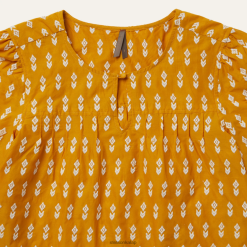 Ezt a puha, lefolyó felsőt azték mintánkkal szőttük, délnyugati vonásokkal, amely vizuális érdekességet kölcsönöz minden megjelenésnek. az osztott nyakú kulcslyukas gallér rejtett gombos zárást tartalmaz. sokoldalú darab a melegebb hónapokra, amely kombinálható farmer vágásokkal, kedvenc farmernadrágoddal vagy szoknyával.